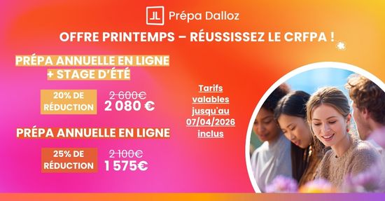 - 50% de remise sur votre prépa annuelle si vous retentez le CRFPA !
