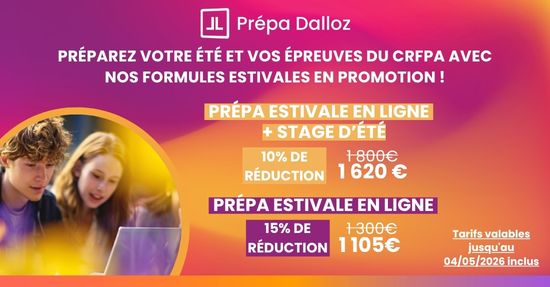 La Prépa Dalloz vous facilite la vie en vous proposant de régler votre prépa annuelle CRFPA en cinq fois sans frais (l’acompte puis 4 versements).